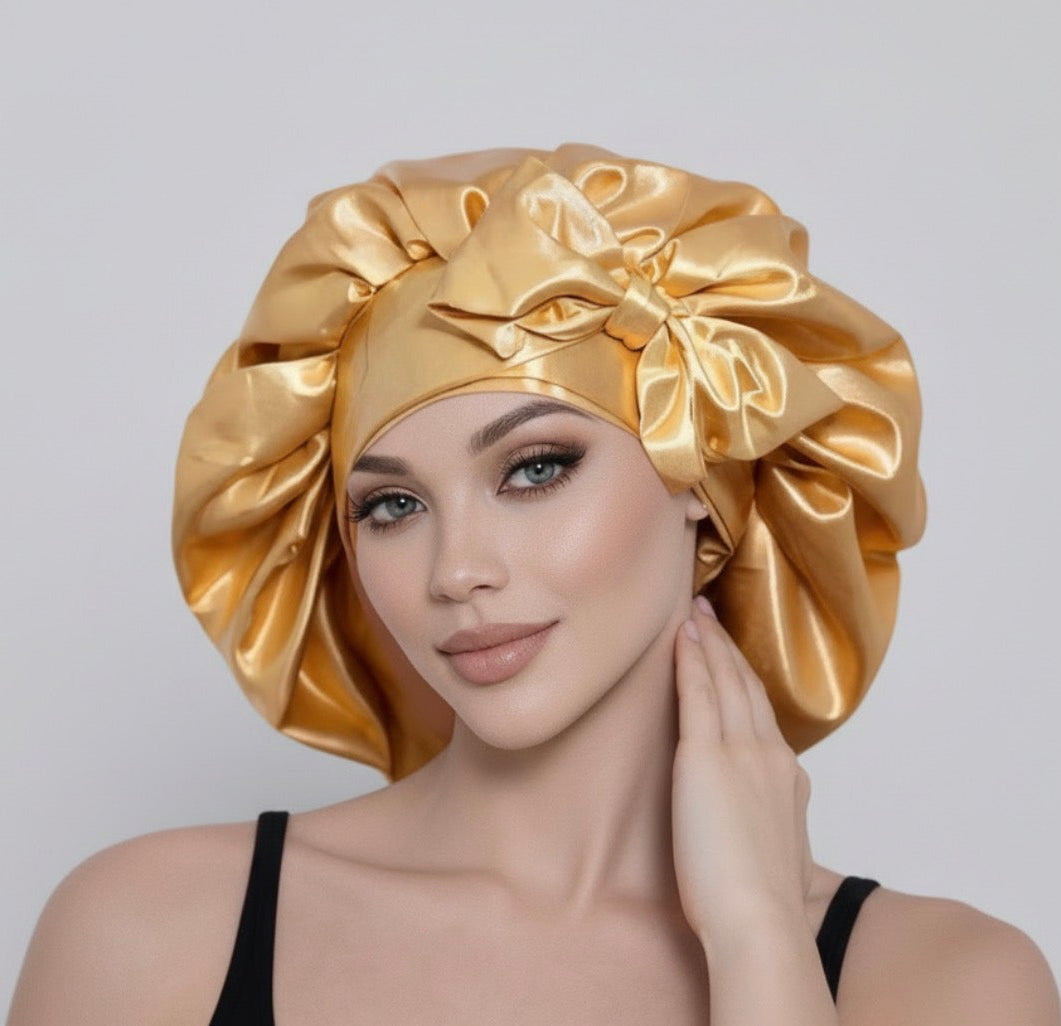 Gold Head Tie Satin Bonnet